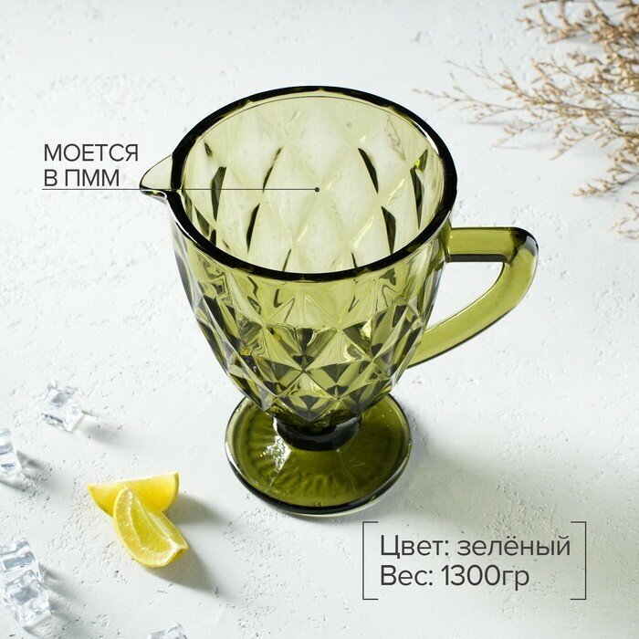 Кувшин стеклянный Magistro «Круиз», 1,1 л, цвет зелёный информация: