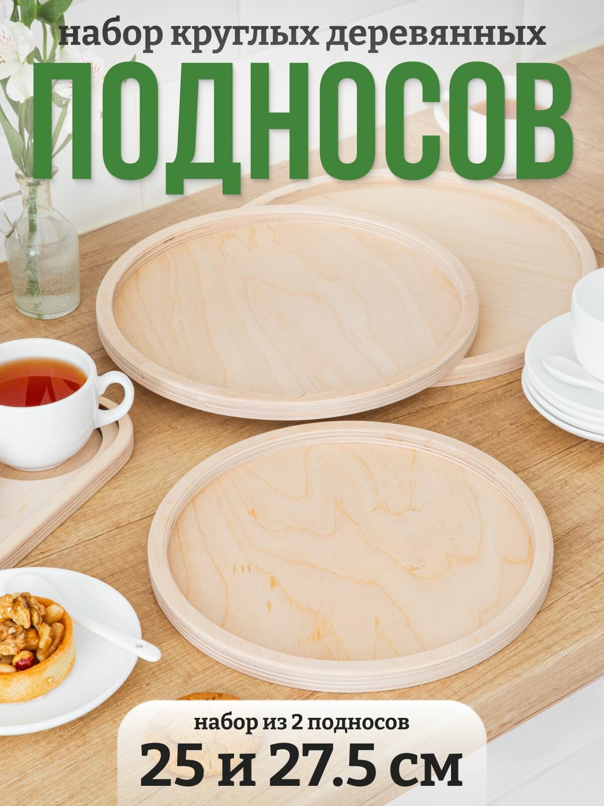 Набор два круглых подноса из дерева 25 и 27.5 см для декора и дома информация: