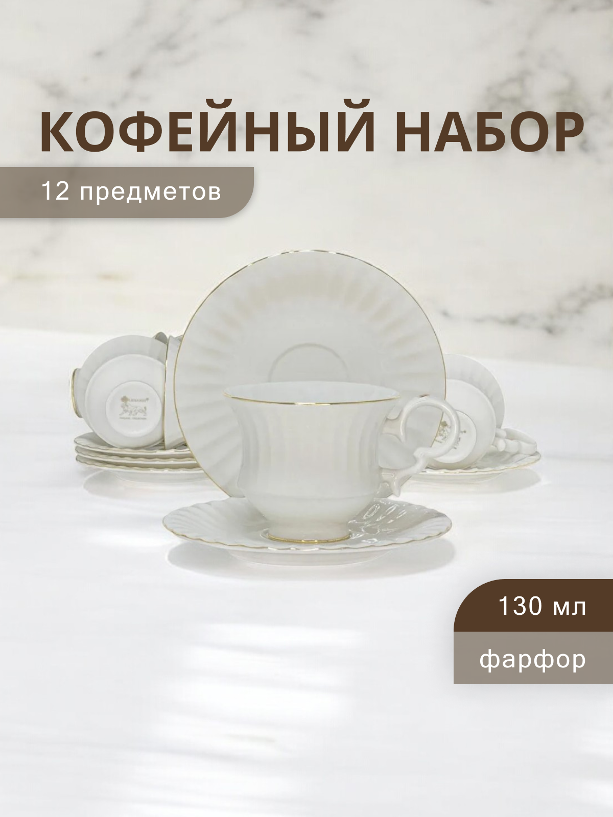 10 цен на Кофейный набор Lenardi, 12 предметов, чашки/блюдца, 130 мл, арт. 109-115
