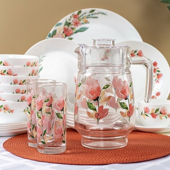 | Состав набора | блюдо, блюдце, кружка, крышка, кувшин, пиала, салатник, стакан, тарелка десертная, тарелка обеденная, тарелка суповая, чашка |