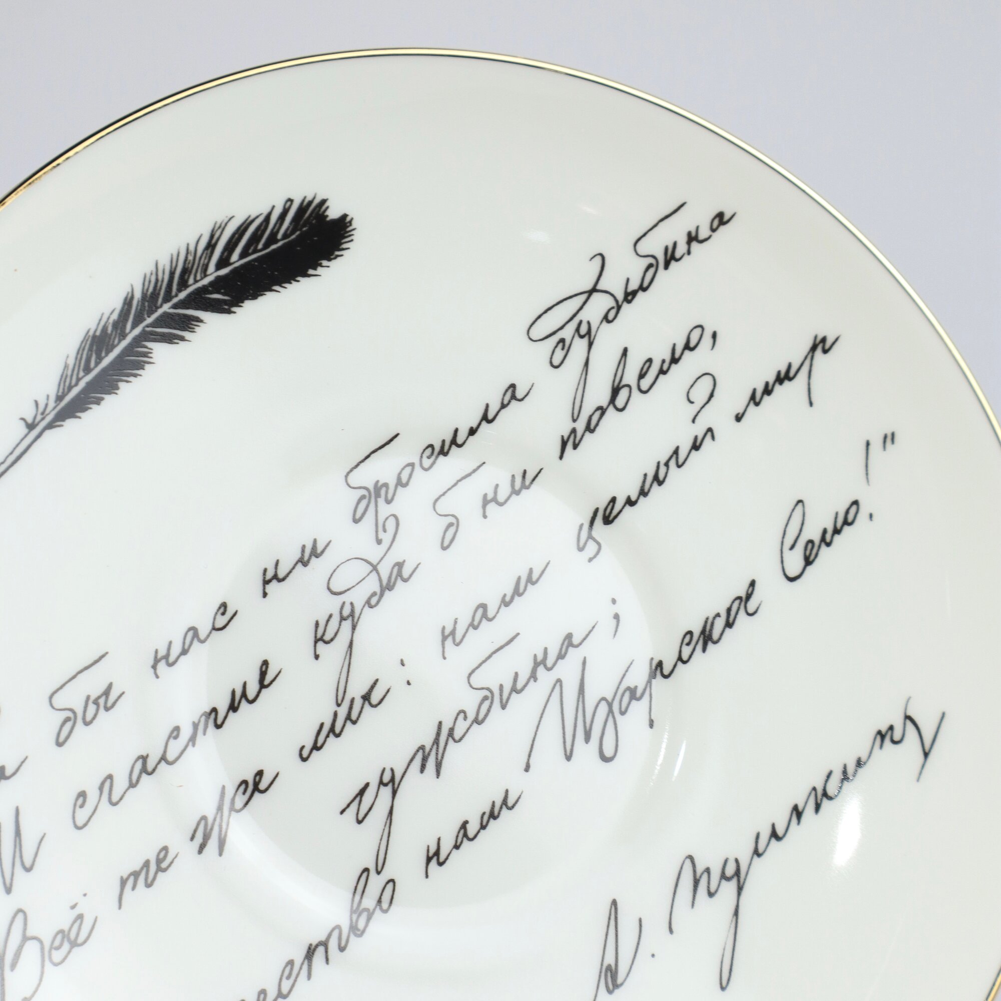 Кофейная чашка с блюдцем, 165 мл. Императорский фарфоровый завод ИФЗ. Форма "Майская", рисунок "Русские писатели. Пушкин А. С.". Костяной фарфор. информация: