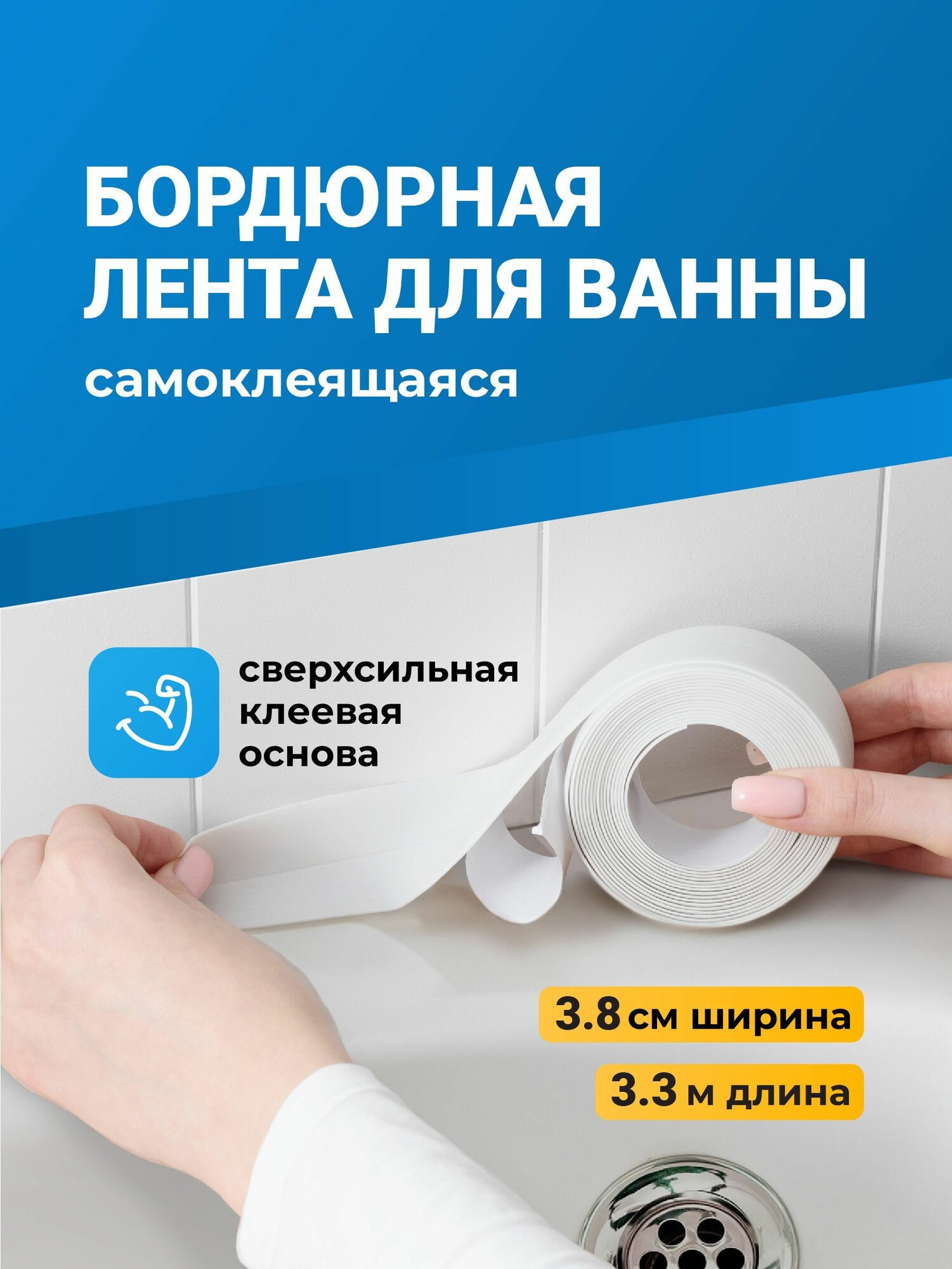 Бордюр для ванны, Бордюрная лента для ванной / cамоклеящаяся бордюрная лента для ванной комнаты, кухни раковины 38 мм х 3,35