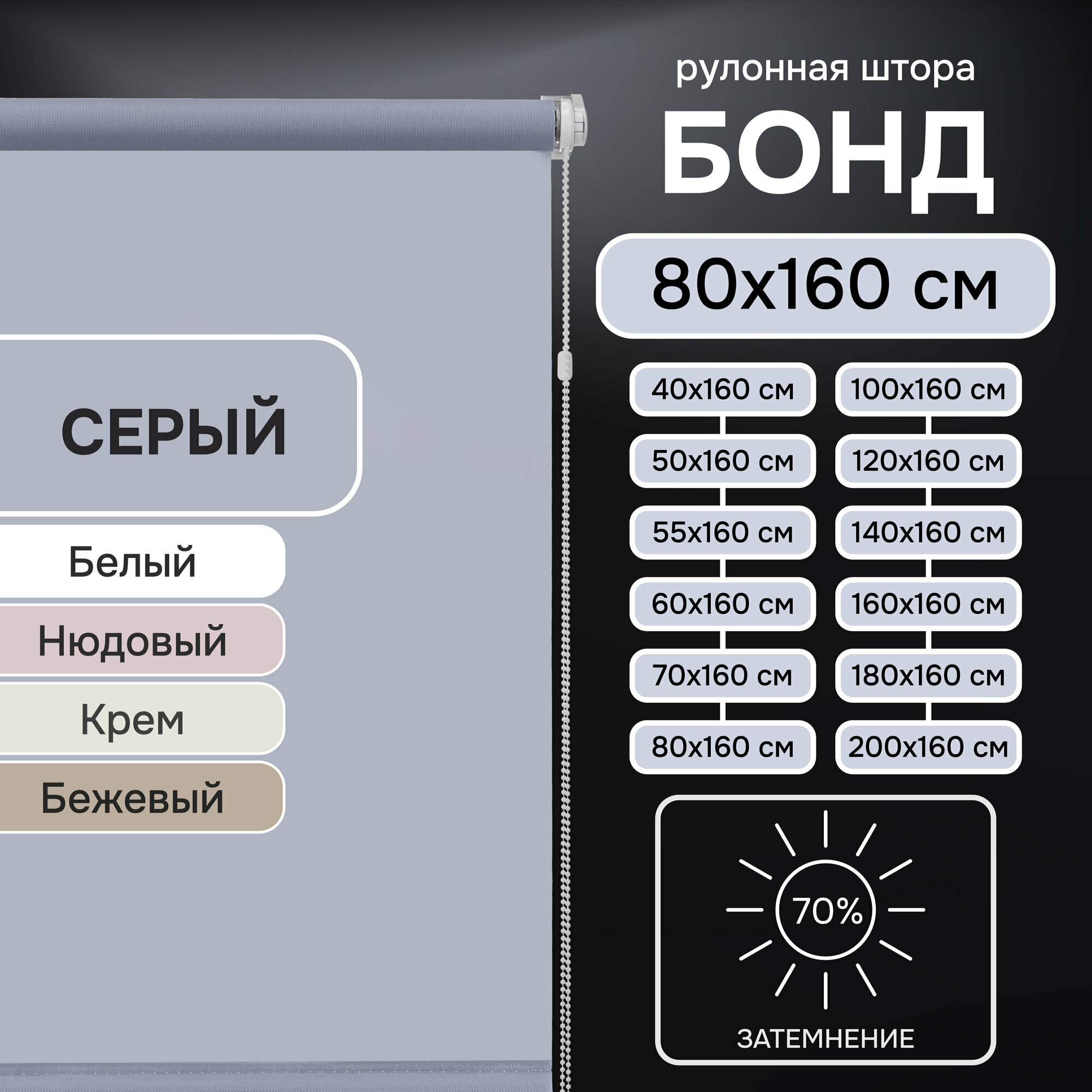 10 цен на Рулонная штора Эскар Бонд, полиэстер, цвет серый, размер 80х160 см