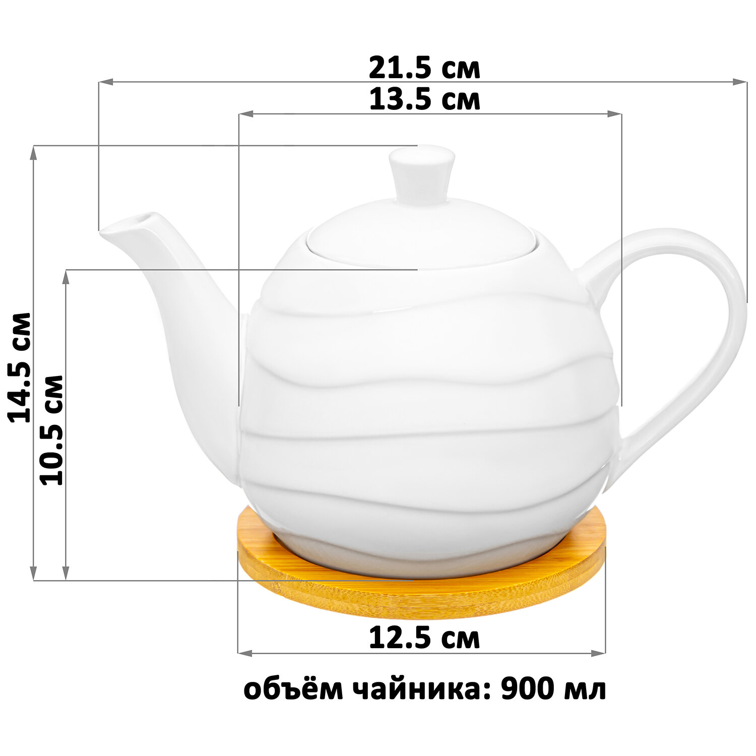 Чайник заварочный 900 л Elan Gallery Айсберг волны 21,5х13,5х14,5 см, на деревянной подставке
