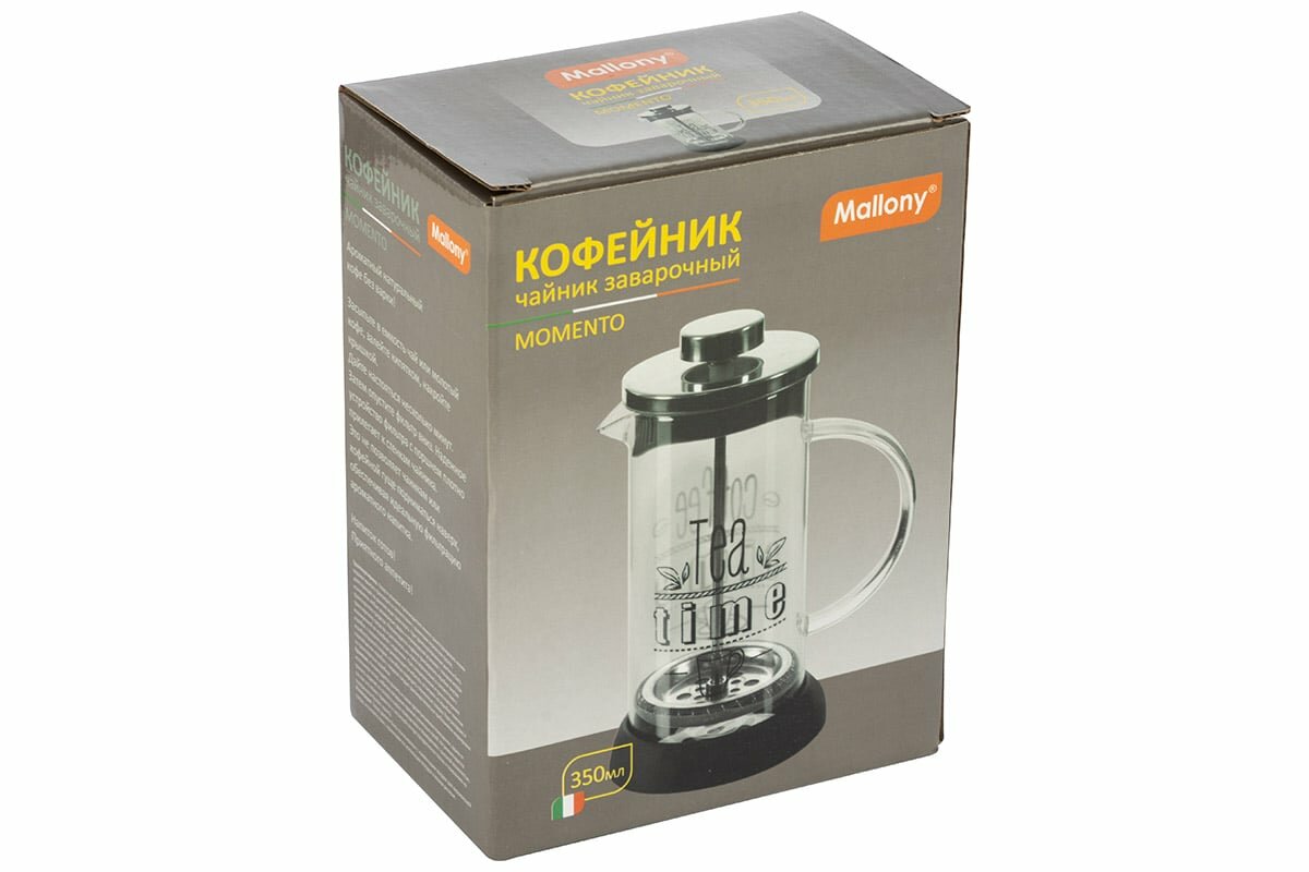 Mallony Чайник/кофейник кофе-пресс Momento 350 мл из боросиликат стекла с надписью на корпусе 007530 .