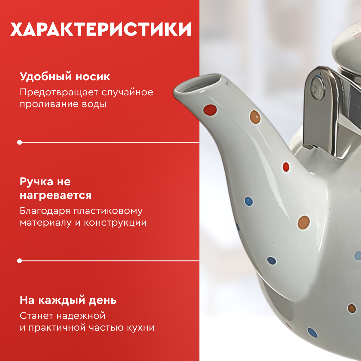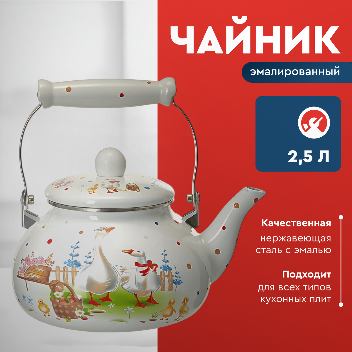 10 цен на Чайник эмалированный, EM-251X1/73 "Гуси", 2.5л, трехслойное покрытие, керамическая ручка, для всех типов плит, белый