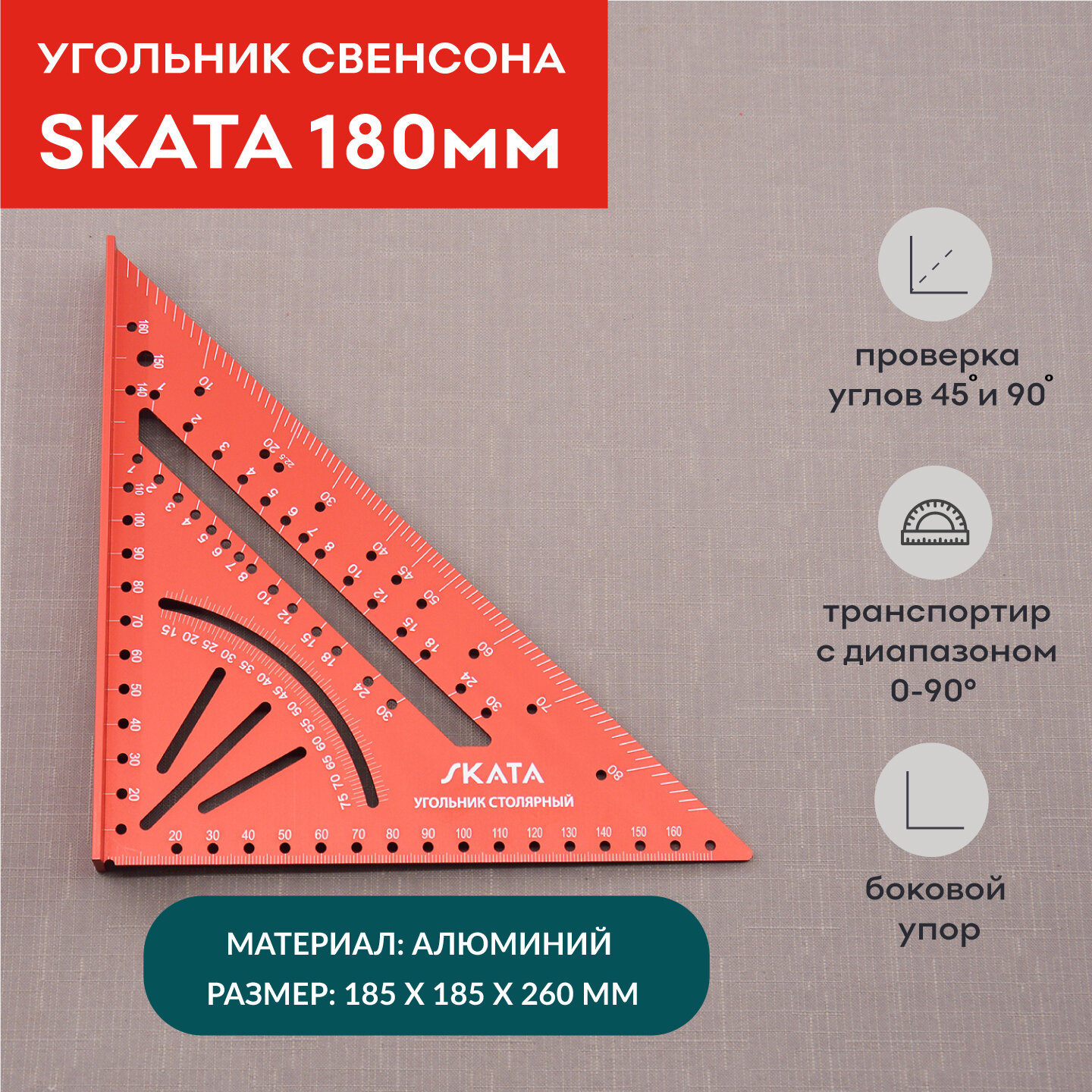 Угольник столярный метрический SKATA 180мм, Алюминий информация: