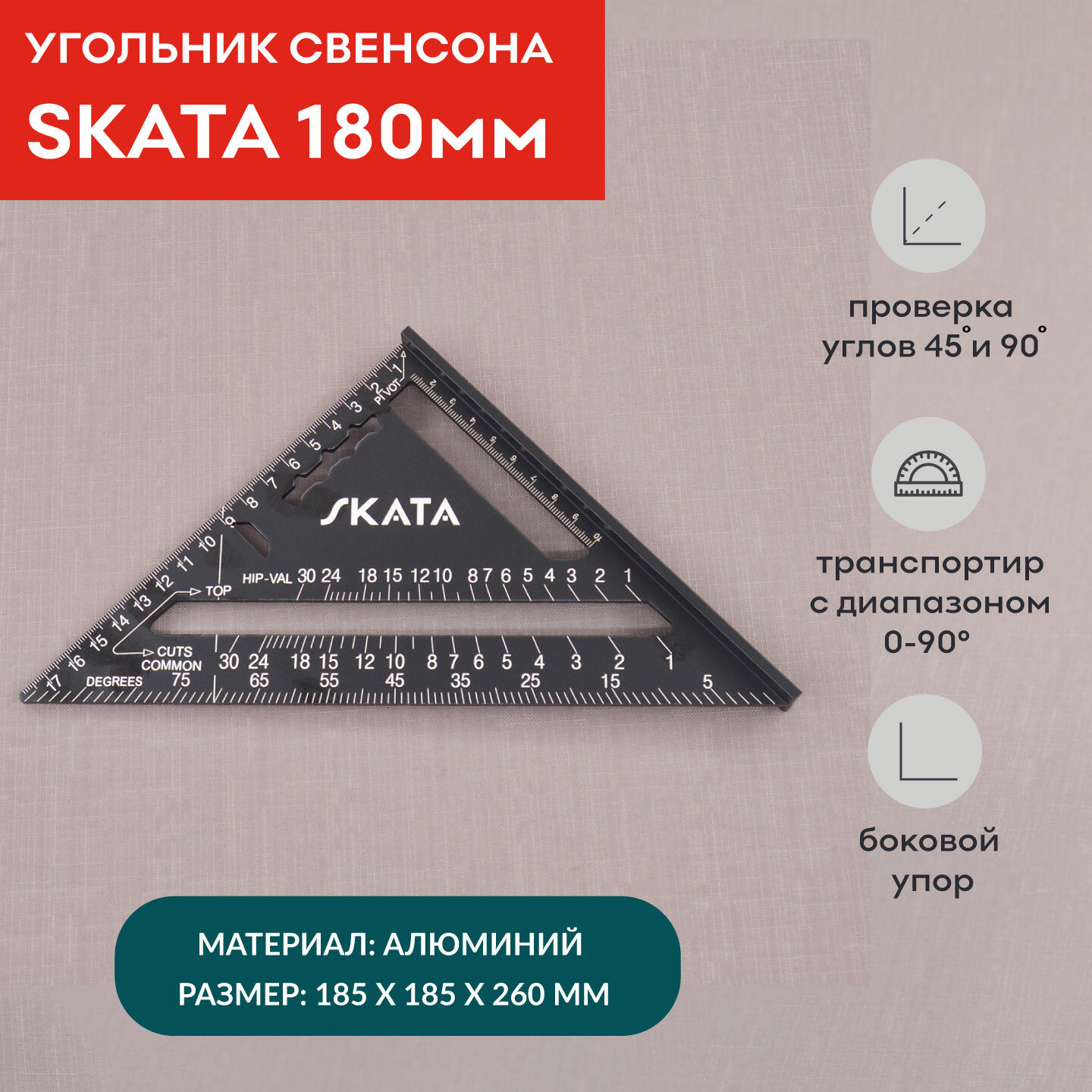 Угольник столярный линейка Свенсона метрический, 180мм, Алюминий информация:
