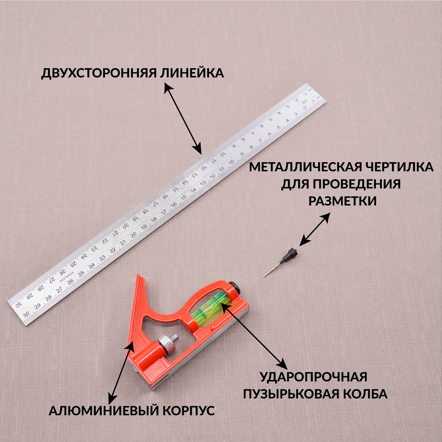 | Особенности | двусторонняя разметка / транспортир / широкое основание |