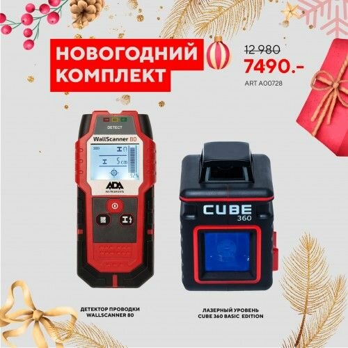 Новогодний комплект Лазерный уровень ADA CUBE 360 Basic Edition + Детектор проводки ADA Wall Scanner 80