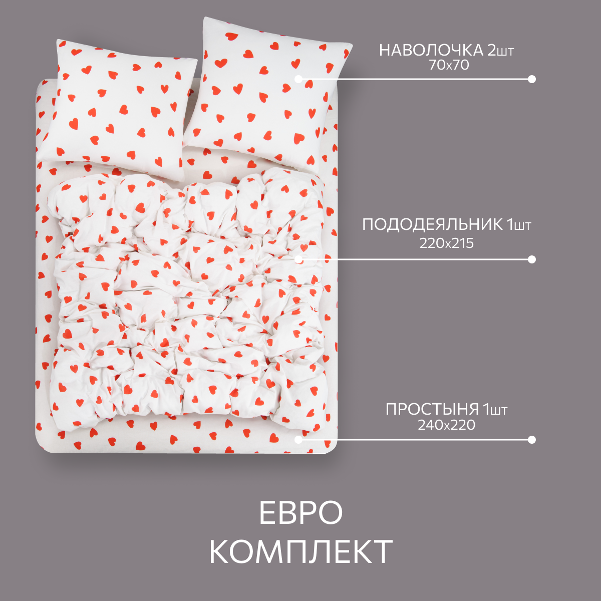 Постельное белье, Бязь, 2х спальное, 2 наволочки 50х70, GM, Affairs of the heart 100% хлопок 2 232 ₽
