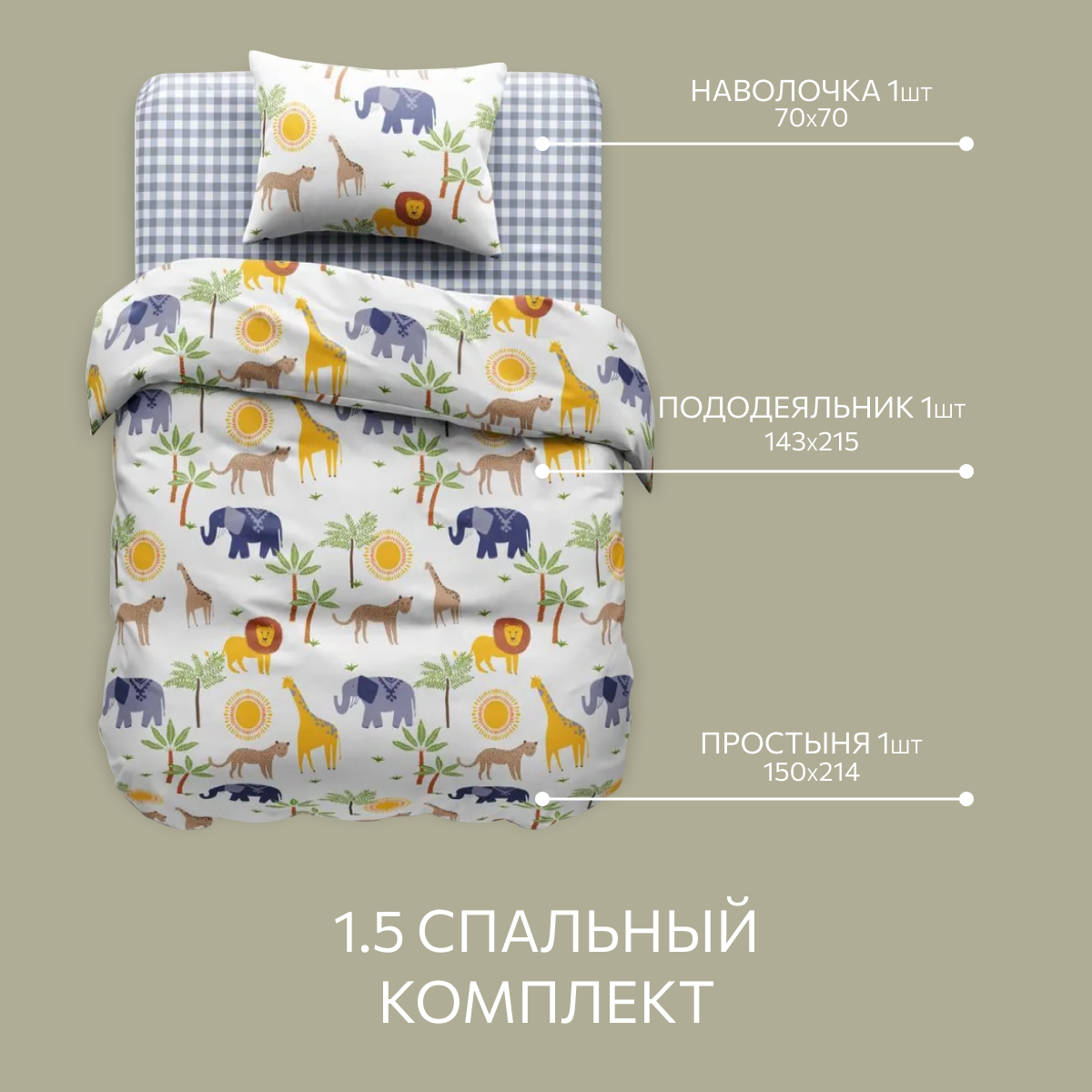 Постельное белье, Бязь, 1.5 спальное, 1 наволочка 50х70, GM, Аnimal traffic 100% хлопок 1 710 ₽