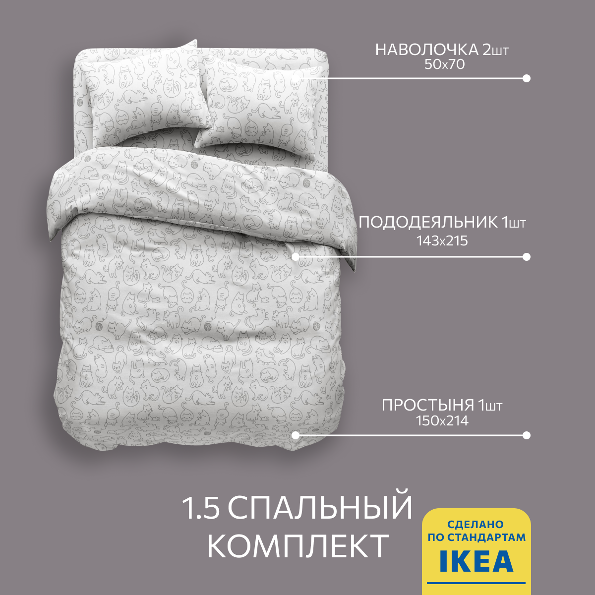 Постельное белье, Бязь, 1.5 спальное, 2 наволочки 50х70, GM, Gray cage 100% хлопок IKEA, 1 827 ₽