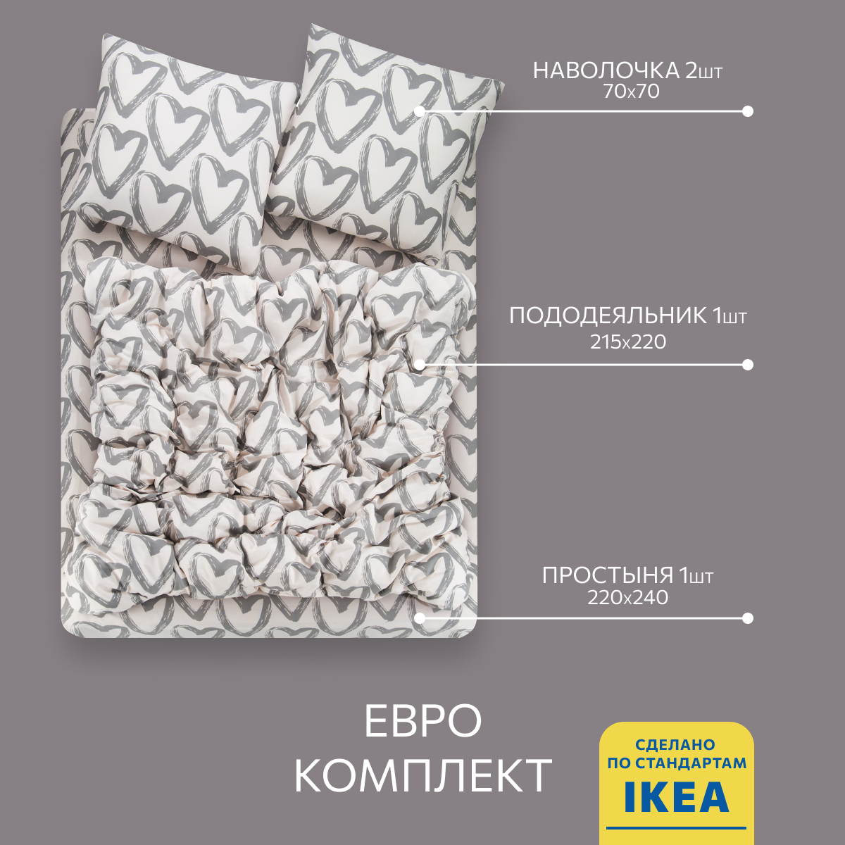 Постельное белье 1.5 спальное, Бязь, Guten Morgen, In love, наволочки 50х70, 100% хлопок IKEA 1 832 ₽
