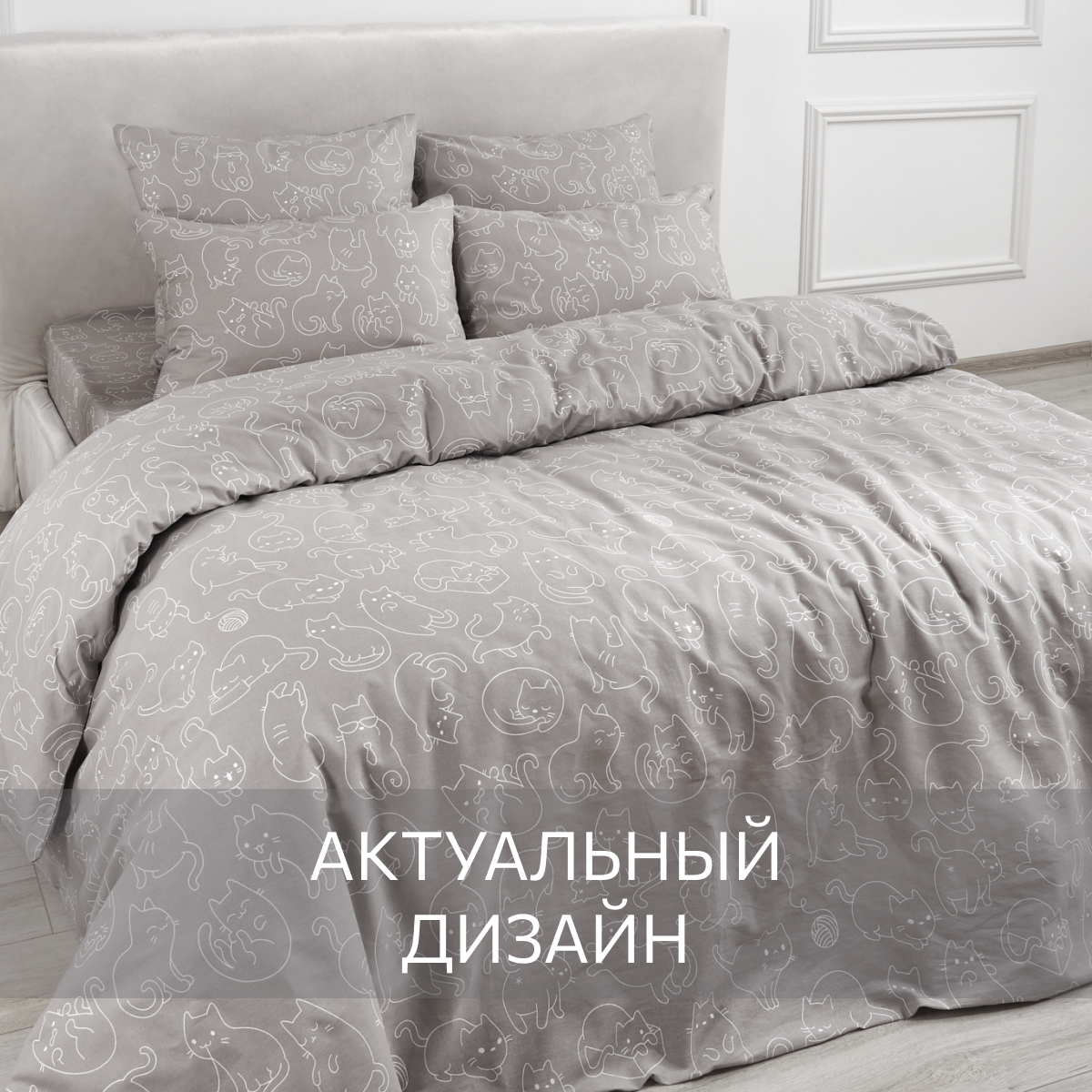 Комплект постельного белья, Бязь, Guten Morgen, 1.5 спальный с нав. 70х70 см, рис.1145, Cat party 1 619 ₽