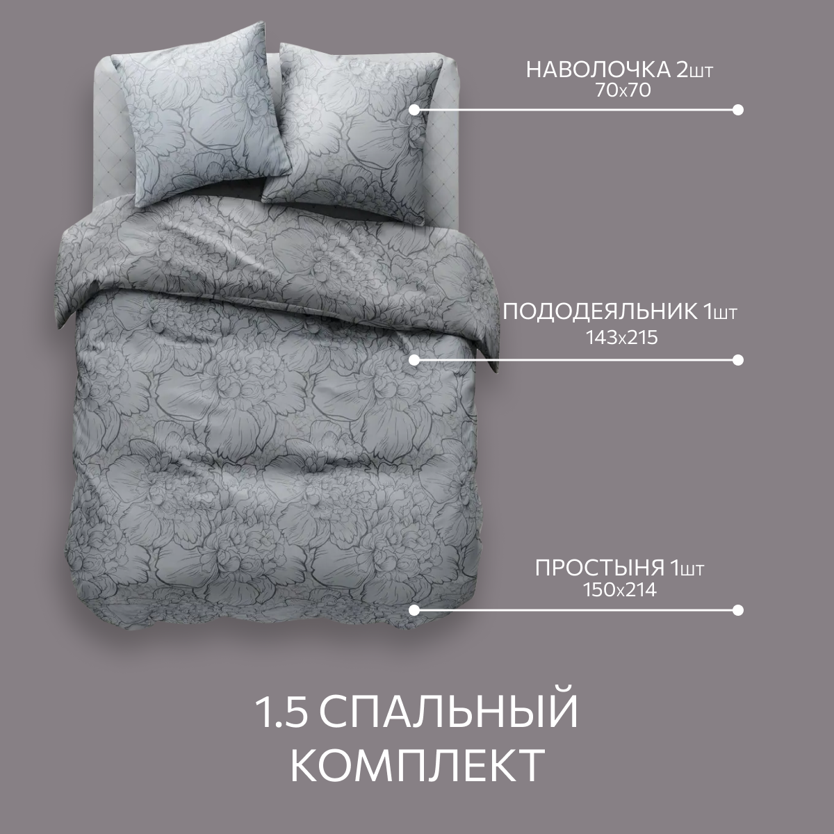 Постельное белье, Бязь, 1.5 спальное, 2 наволочки 70х70, GM, Twilight peonies 100% хлопок информация: