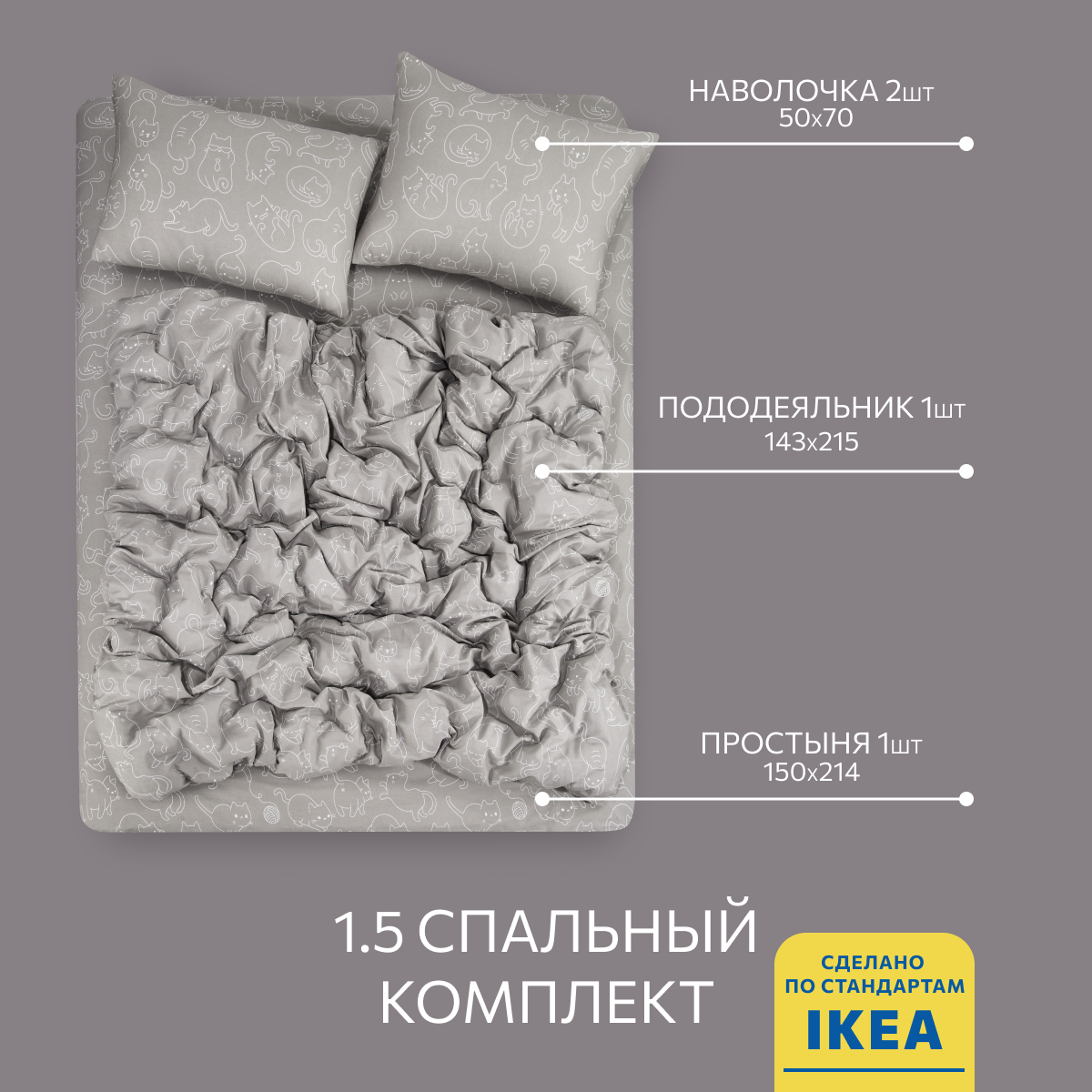 Постельное белье, Бязь, 1.5 спальное, 2 наволочки 50х70, GM, Gray cage 100% хлопок IKEA, 1 827 ₽