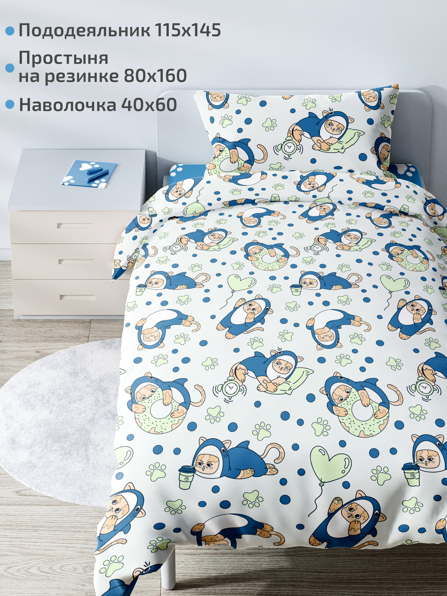Постельное белье 160х80, простынь на резинке 80х160 "Котоакулы" DeepSleep информация: