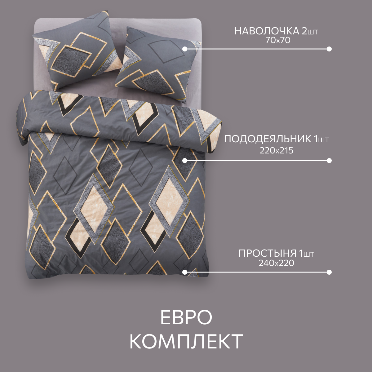 Постельное белье, Поплин, 1.5 спальное, 2 наволочки 70х70, GM, Rhomb 100% хлопок на Новый год 2 310 ₽