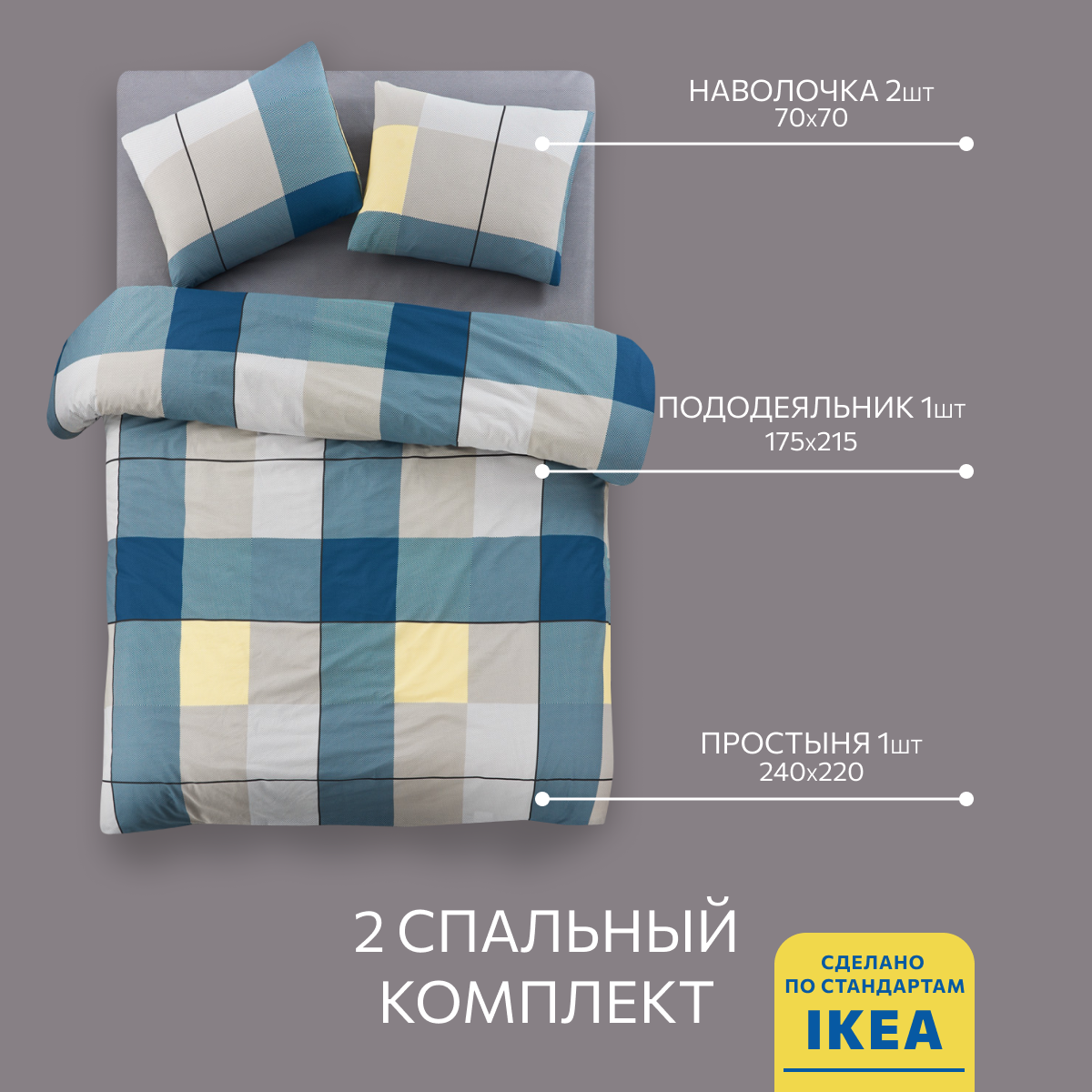 Постельное белье 2 спальный комплект с Евро простыней, Поплин, Guten Morgen, Iceberg, наволочки 70х70, 100% хлопок 2 585 ₽