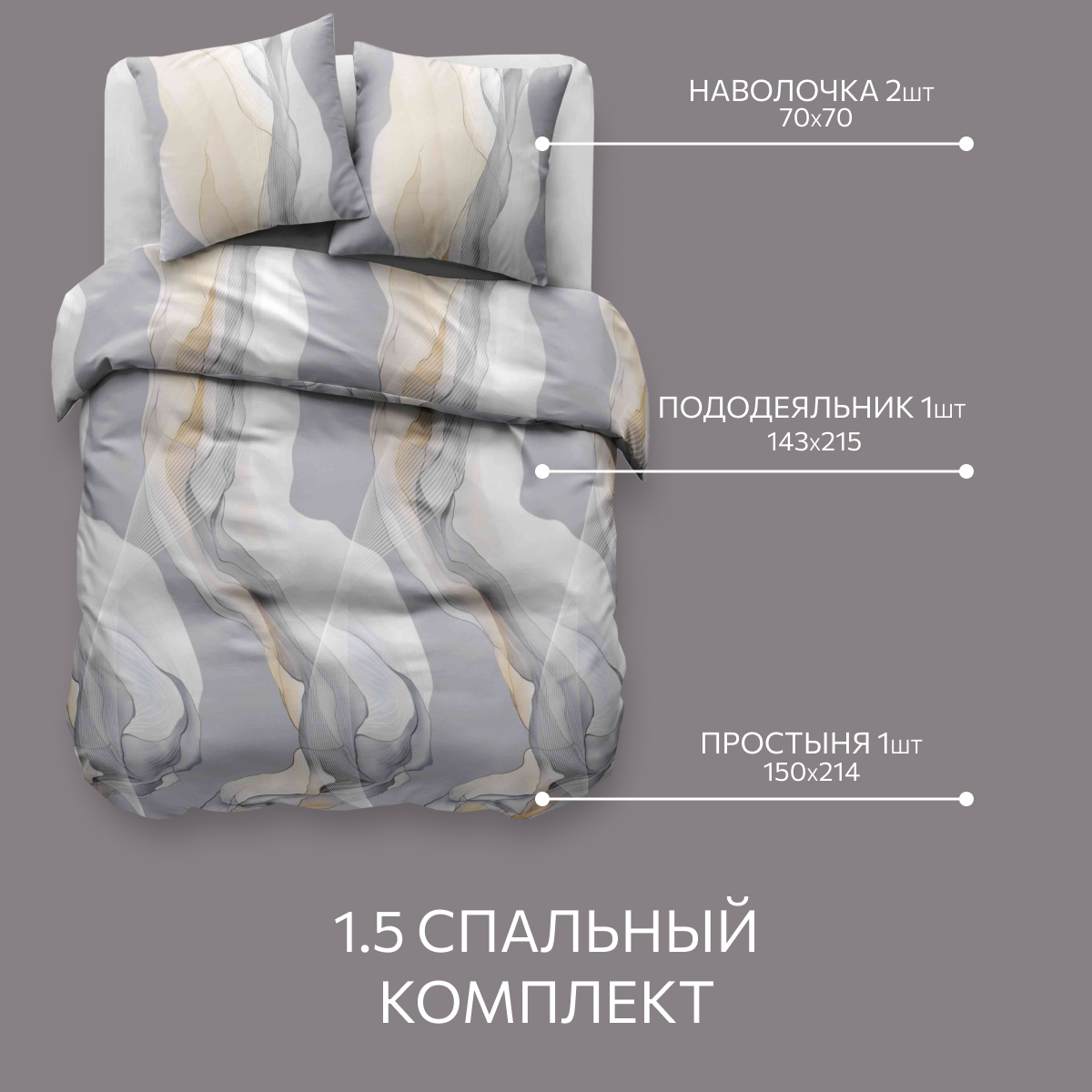 Постельное белье, Поплин, 1.5 спальное, 2 наволочки 70х70, GM, Fog 100% хлопок на Новый год 2 310 ₽