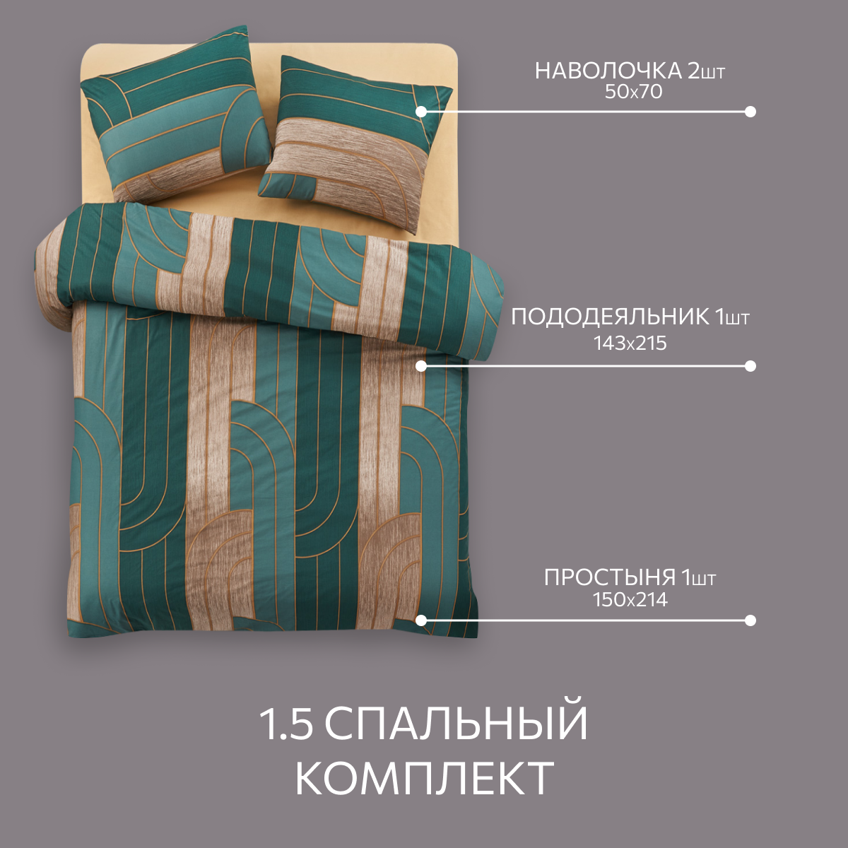 Постельное белье, Поплин, 1.5 спальное, 2 наволочки 50х70, GM, Виридиан 100% хлопок на Новый год 2 300 ₽