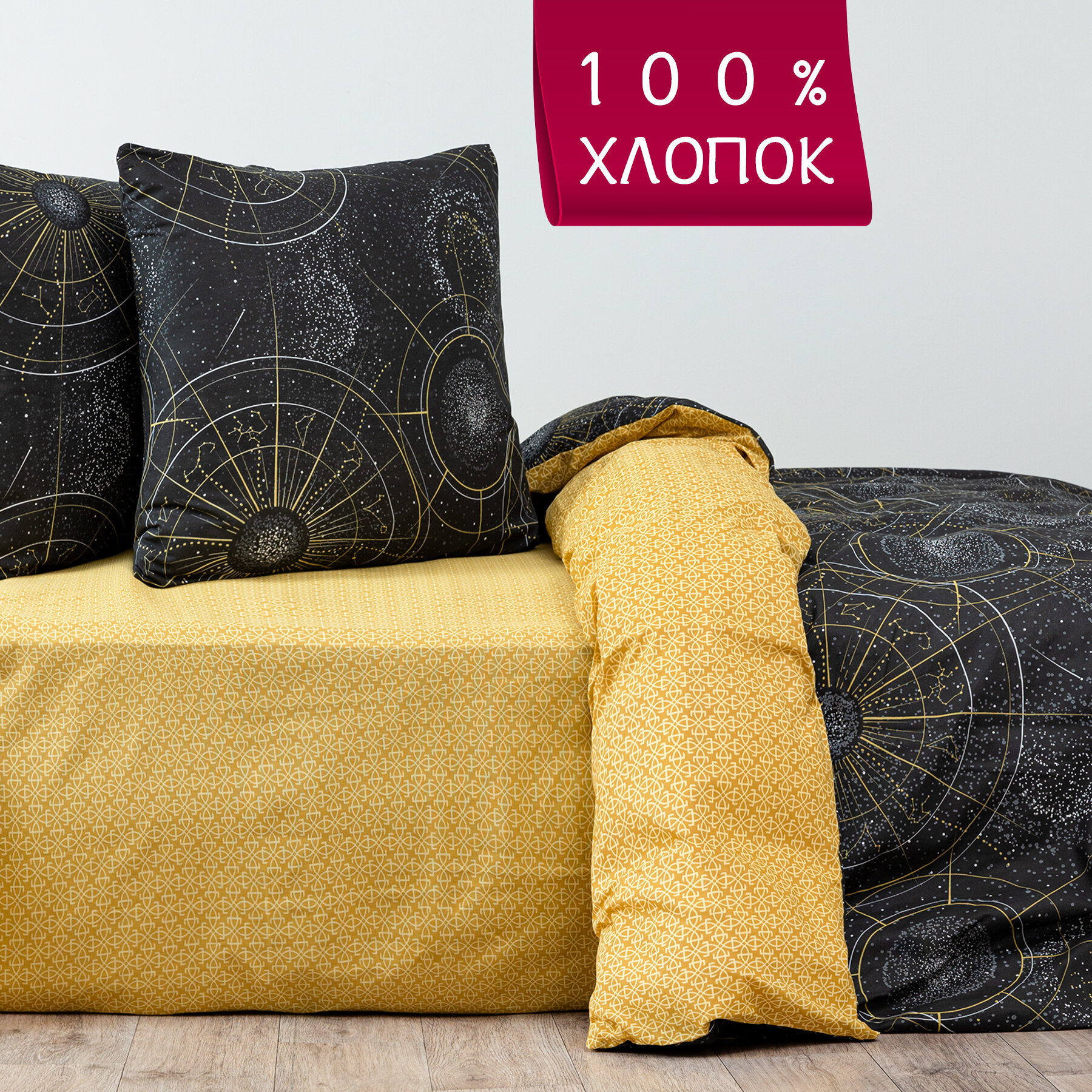 Постельное белье евро / Комплект постельного белья Евро Galtex Комфорт компаньон: Созвездие черный / Тотем желтый 2 547 ₽