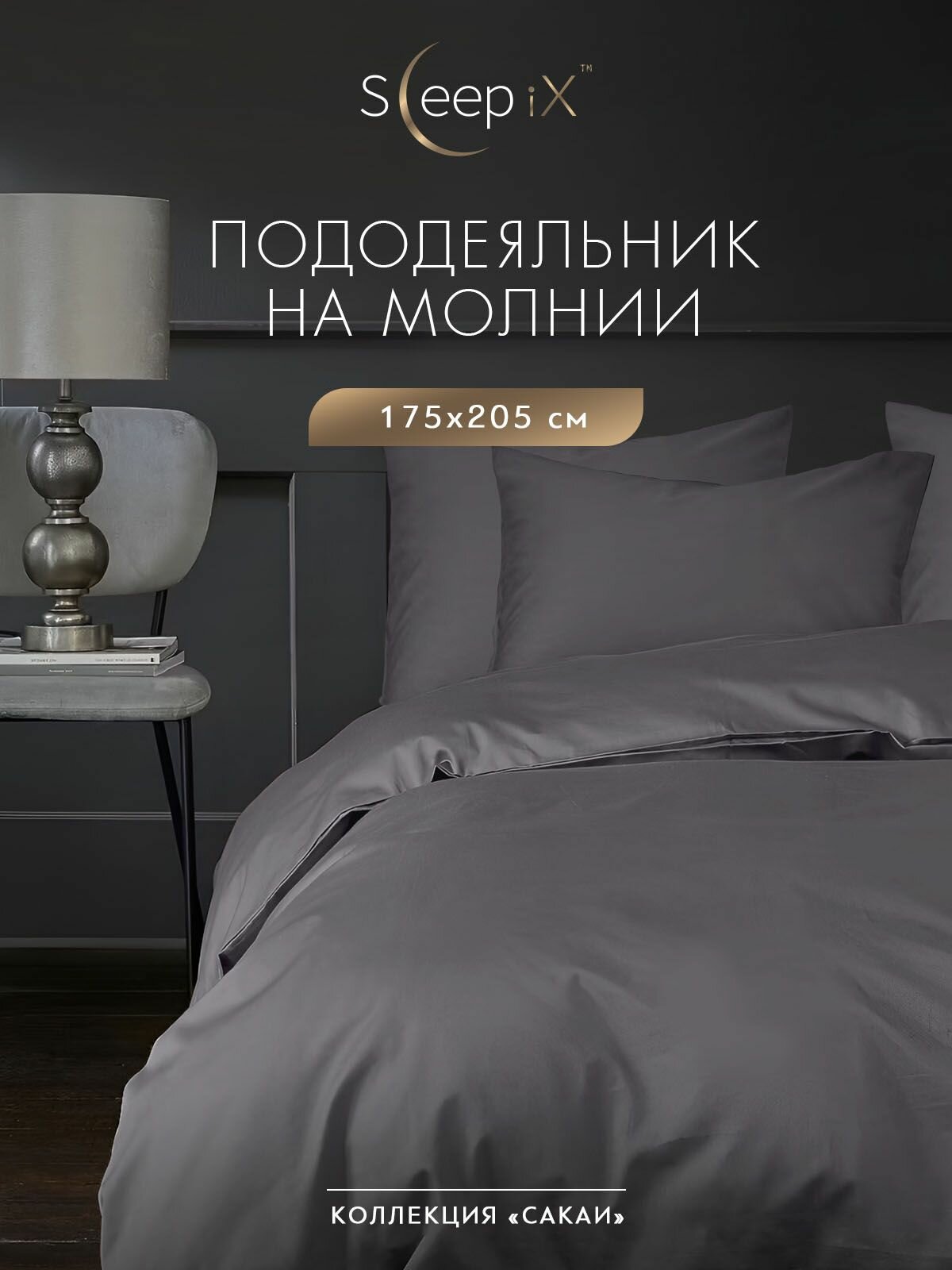 SleepIX Пододеяльник на молнии полуторный "Сакаи" перкаль, хлопок, 145x205, темно-серый 2 590 ₽
