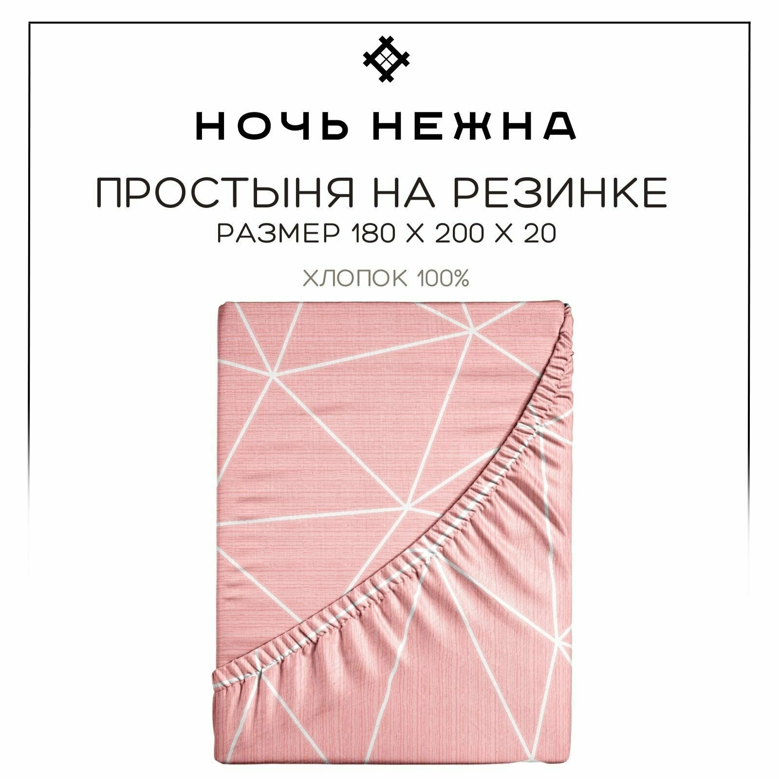 Простыня на резинке Поплин 200х200х20 Ночь Нежна "Грань (розов.) осн. 7352-1" 1 428 ₽