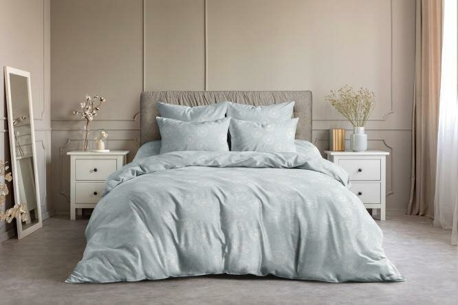 Простынь обычная/147х215/поплин/простыня/хлопок/Ночь Нежна/Терция голубой
