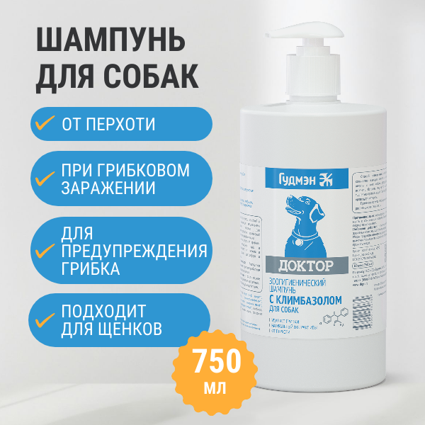 Шампунь Гудмэн "Доктор"с климбазолом для собак, противогрибковый, 750 мл информация: