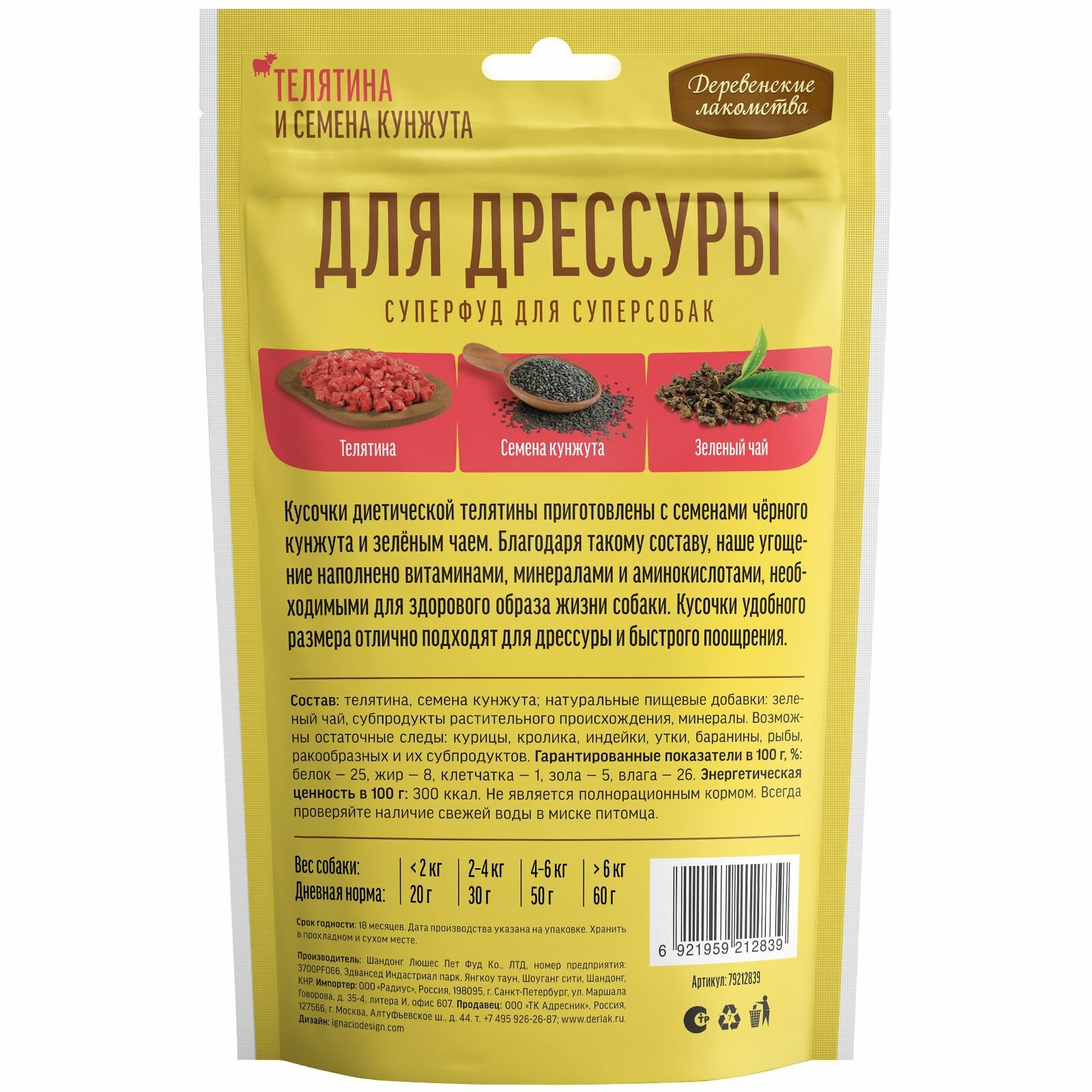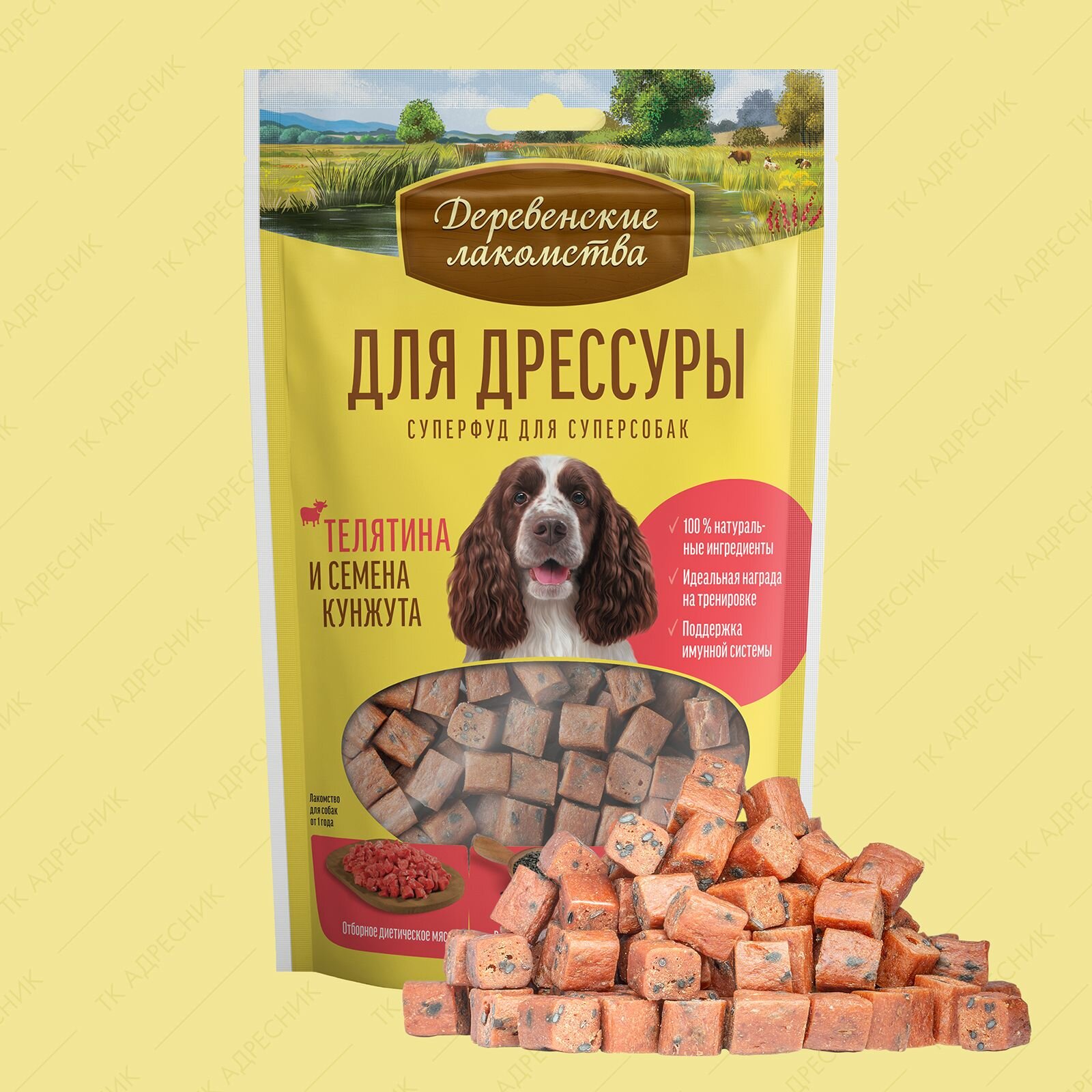 10 цен на Лакомство для дрессуры собак всех пород "Деревенские лакомства" Телятина и семена кунжута, 90 гр.