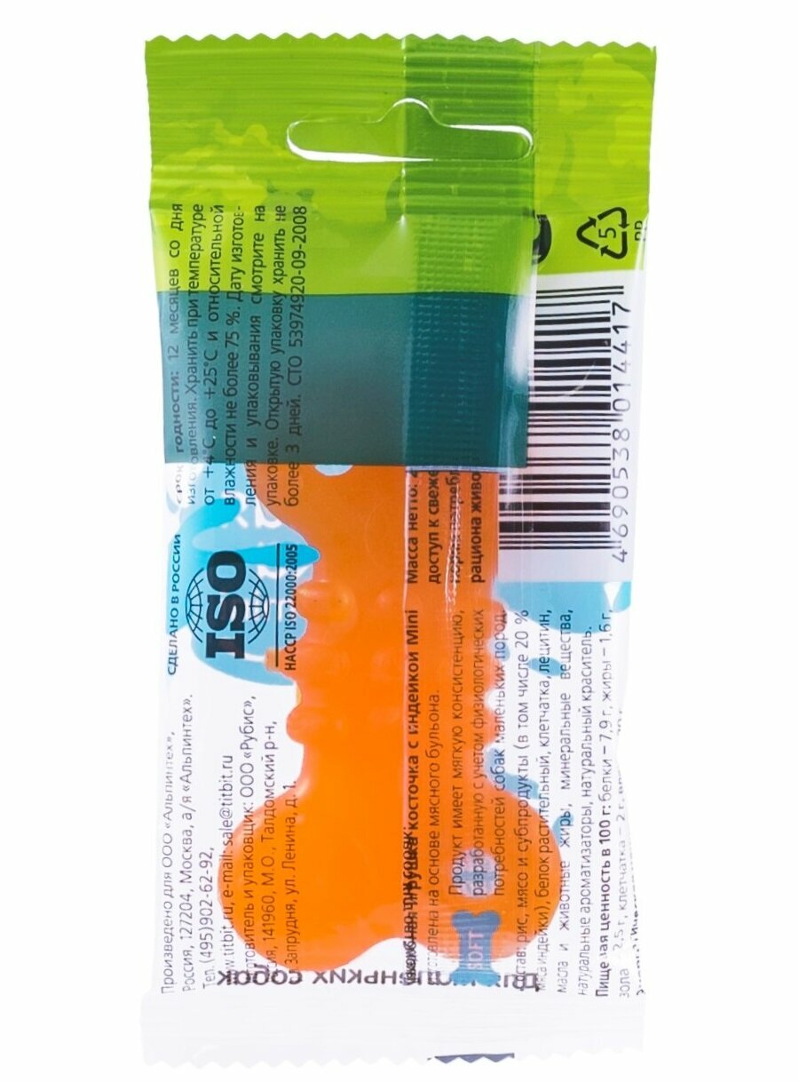 Лакомство TiTBiT Съедобная игрушка косточка mini с индейкой для собак (20 г) информация: