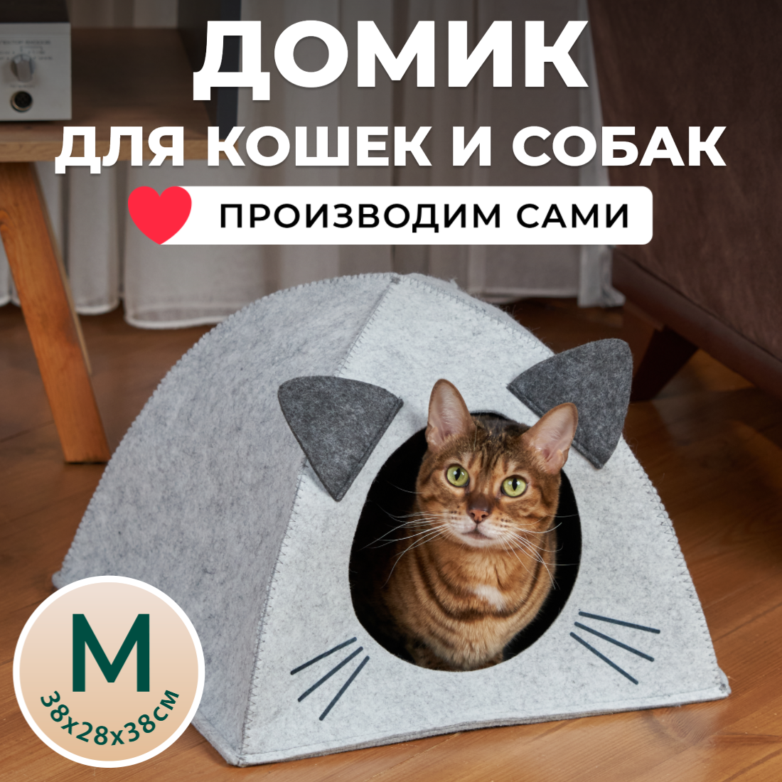 Домик для кошек и собак Eva "Палатка ушастая", лежанка для кошек собак мелких средних пород, войлочный, размер М