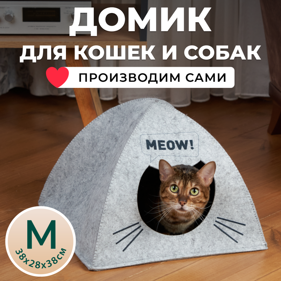 Домик лежанка для кошек собак мелких средних пород животных "Палатка MEOW", войлок, 38х28х38 см