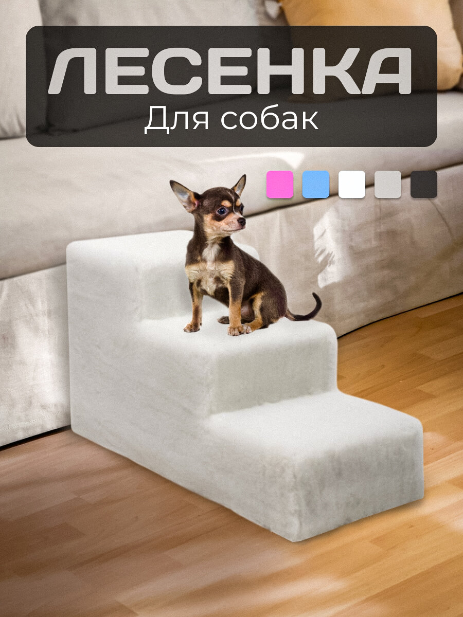 10 цен на Лесенка для собак "ДобрМир", для малых пород, нескользящая, белая, 50x30x35 см