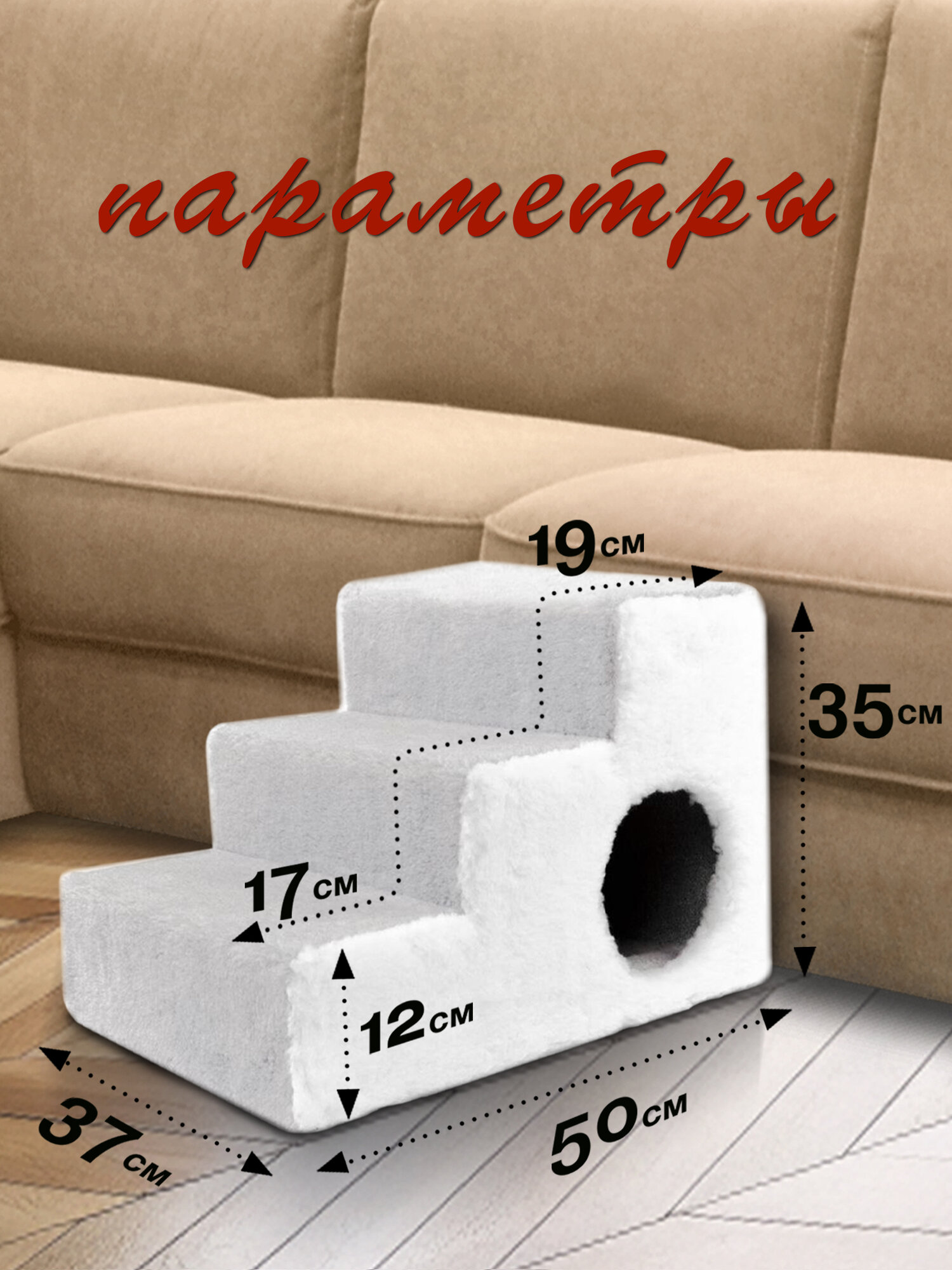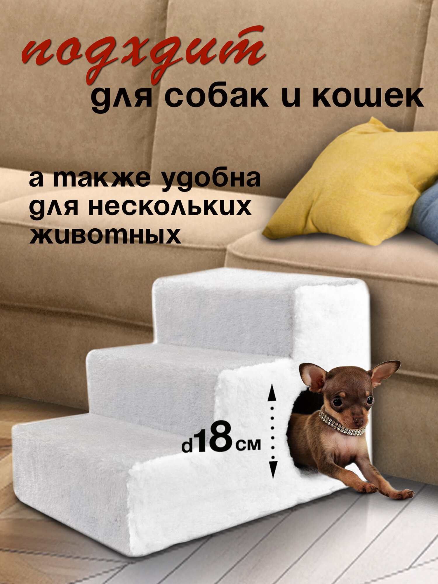 Прикроватная лестница ДобрМир, для кошек и собак, искусственный мех 3 100 ₽