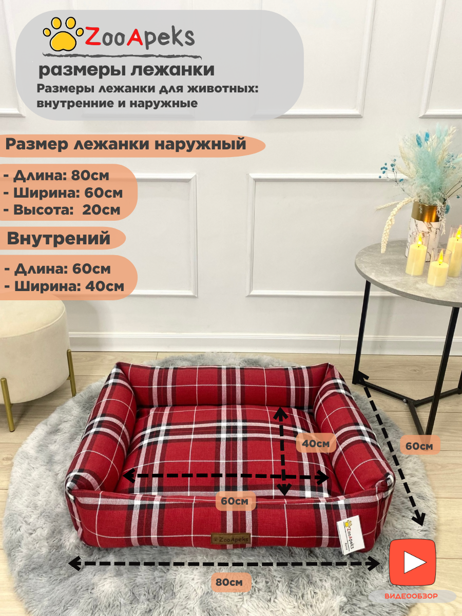 Диван-лежанка для кошек и собак ZooApeks 80x55x25см красная-клетка 3 000 ₽