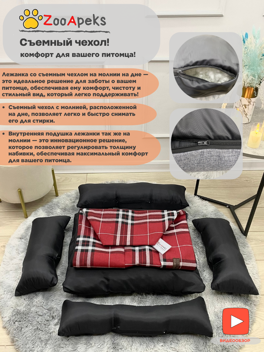 Отзывы на Лежак для собак "Софа" №3 80х60х20 см, съемный чехол, красная-клетка