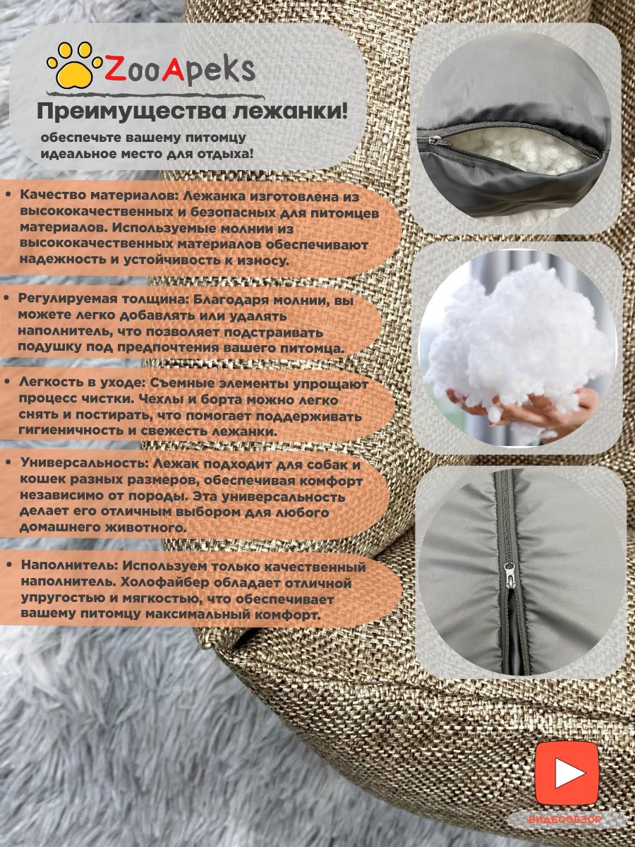 Лежанка для собак "ZooApeks" 80х55 см льняной 2 900 ₽