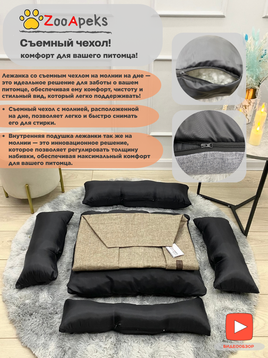 Лежак-диван для собак, для кошек, для животных средних больших пород, съемный чехол, рогожка, цвет льняной 100х70х30 см ZooApeks