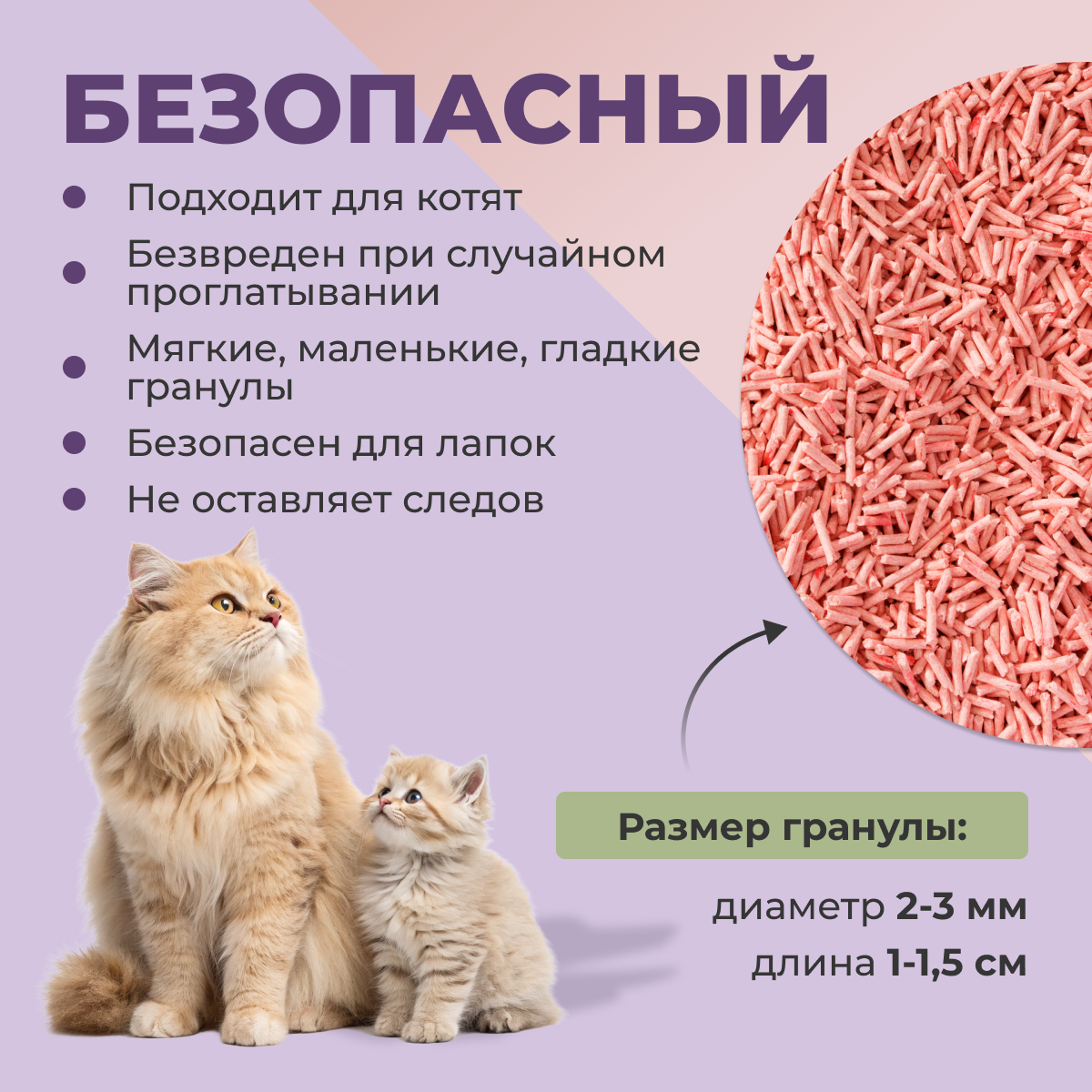 | Особенности | ароматизированный / биоразлагаемый / возможность утилизации в канализации / гранулированный / для длинношерстных / для котят / контроль запаха / с защитой от запаха / смываемый |