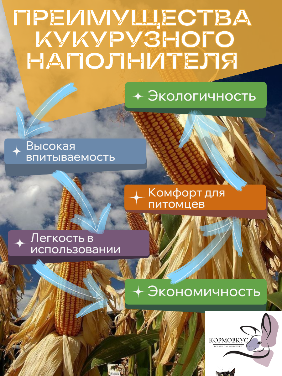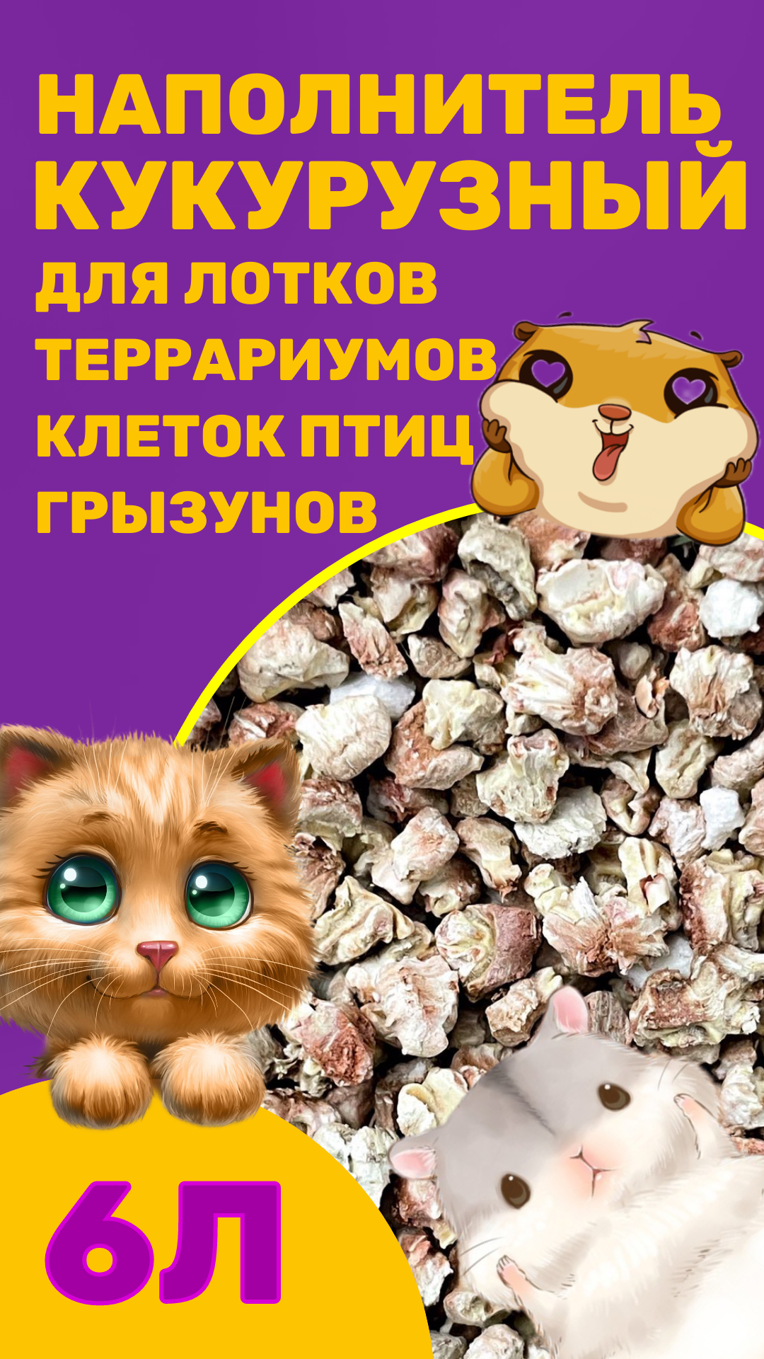 Кукурузный наполнитель для клеток грызунов и террариумов, впитывающий 6 литров, фракция 2-6 мм. информация: