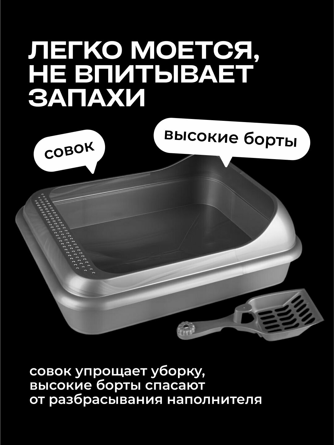 Туалет лоток для кошек с высокими бортами серый с совком набор информация: