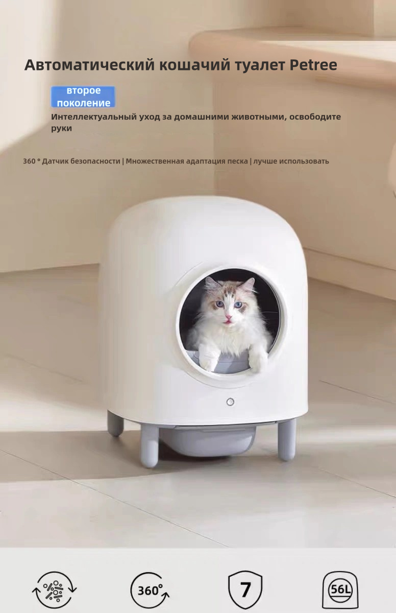 Автоматический туалет PETREE S320, белый, для кошек, 52 см x 52 см информация: