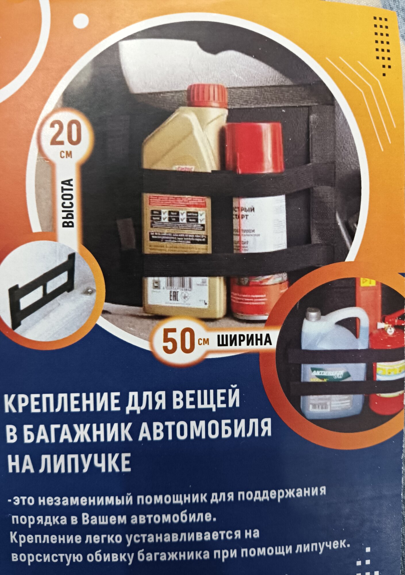 Крепление для вещей в багажник на липучке, высота 50х20см, информация: