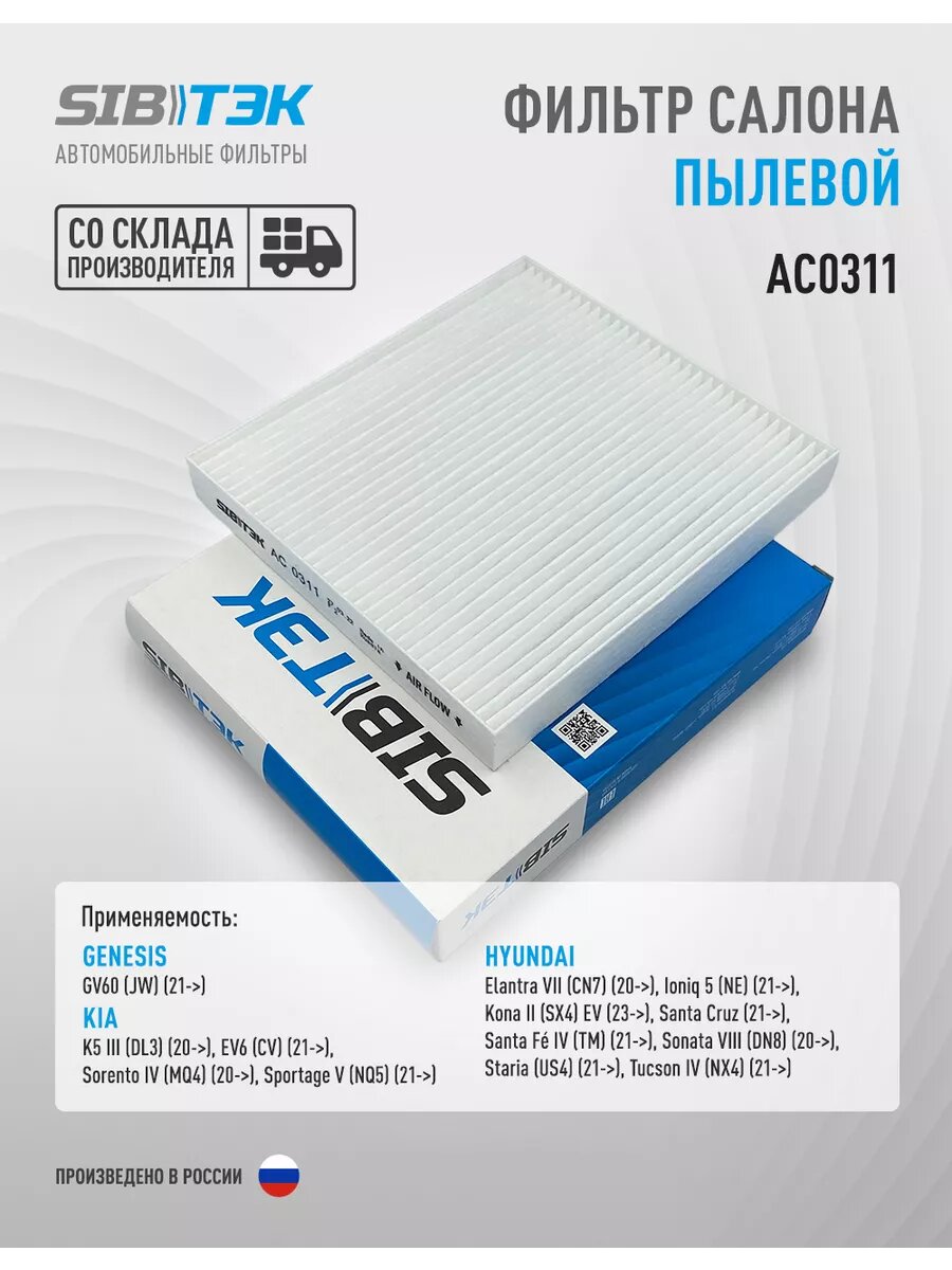 SIBTEK AC0311 Фильтр салона GENESIS GV60 (JW) (21->), HYUNDAI Elantra VII (20->), Ioniq 5 (NE) (21->), Santa Cruz