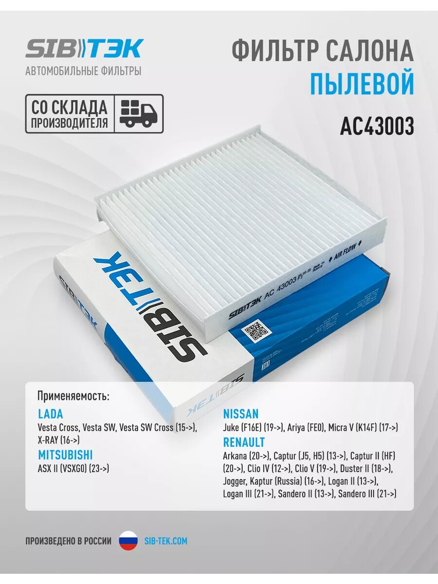 SIBTEK AC43003 Фильтр воздушный салона RENAULT Logan,Sandero SIBТЭК