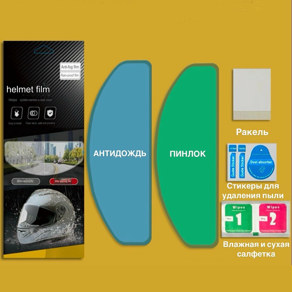 Отзывы на Mosporty Набор (антидождь и пинлок) для визора шлема, универсальный