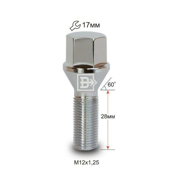 Отзывы на 20 шт! Болт колёсный хромированный М12x1,25x28, конус, для ВАЗ, Citroen, Peugeot, Fiat и др.